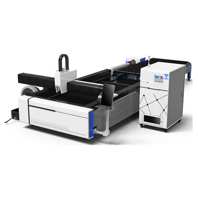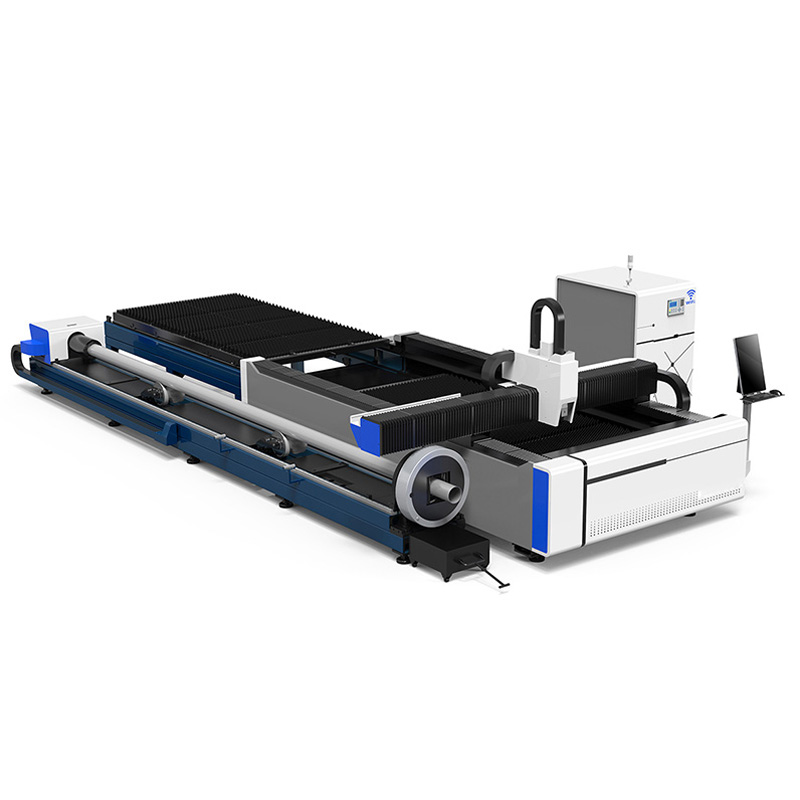 Верстат лазерного різання листового металу та труби зі змінним столом – це ефективне та точне різальне обладнання, яке широко використовується в металообробці. Цей верстат для різання волоконним лазером з приводом, що обертається, може різати як листовий метал, так і металеві круглі і квадратні труби, двотаврові балки і швелера. Основна перевага верстата полягає у використанні конструкції з подвійним змінним столом значно підвищує ефективність виробництва та експлуатаційну гнучкість обладнання. Також є такі опції, як функція автоматичного завантаження та вивантаження на вибір клієнта, що підвищує ефективність роботи.