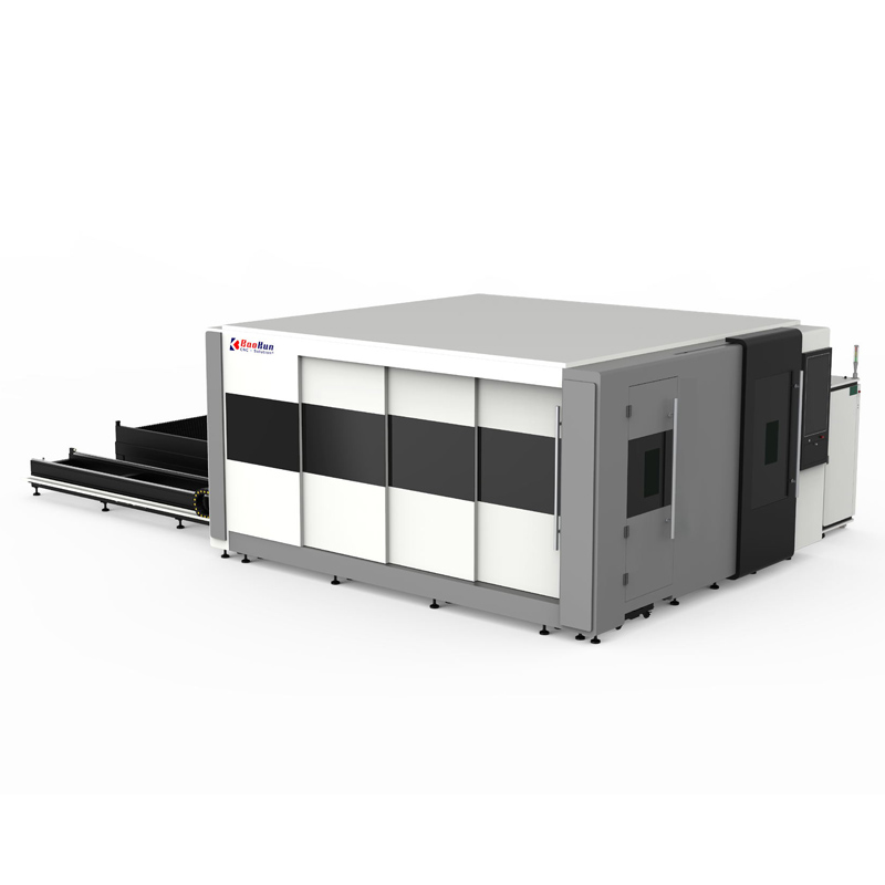 Велика об'ємна конструкція використовується для забезпечення жорсткості та стійкості обладнання, що підходить для високоточної обробки. Подвійна система зміни столів лазерної різальної машини: Коли один стіл ріже, інший стіл може завантажувати та вивантажувати матеріали одночасно, що значно підвищує ефективність виробництва.